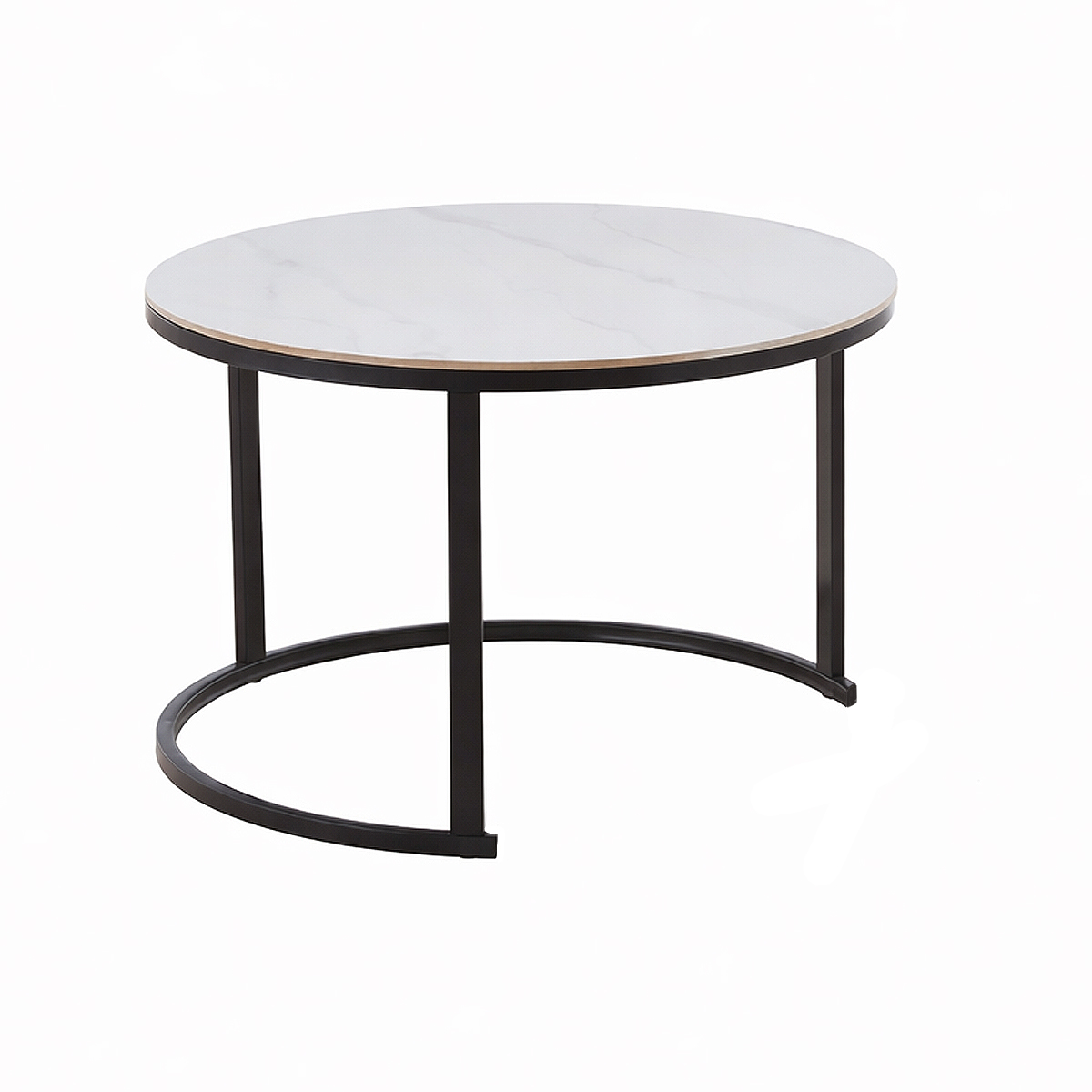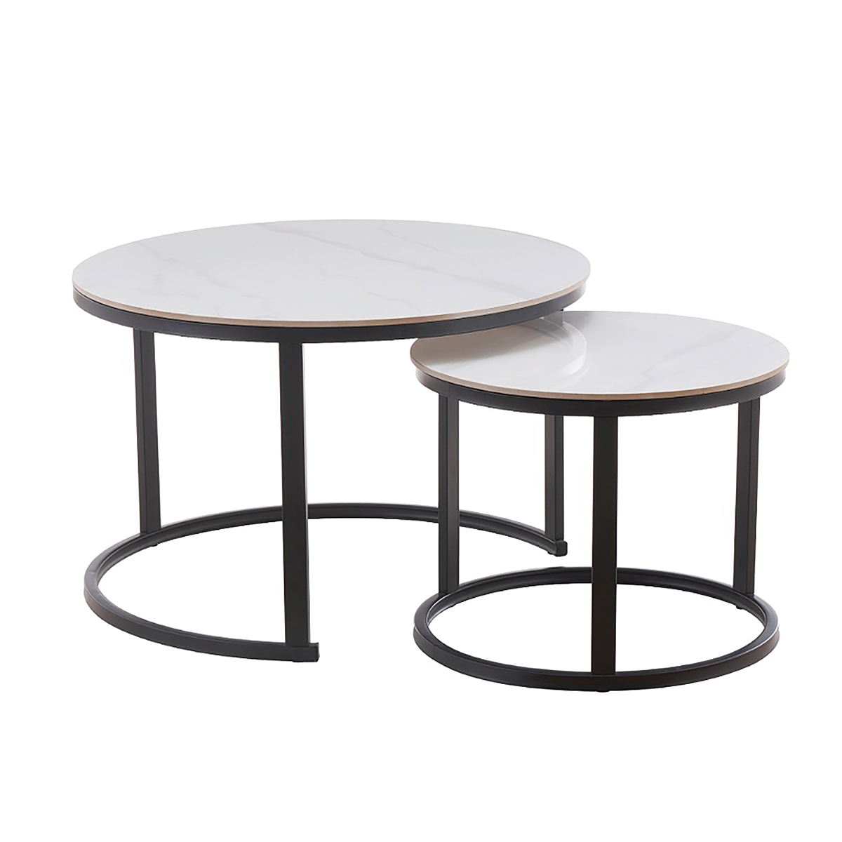 Кавовий стіл «Болеро» — це стильний комплект із двох столиків, який поєднує сучасний мінімалізм та функціональність. Різні розміри дозволяють використовувати їх разом або окремо, створюючи динамічну та зручну композицію у вітальні.Керамічна стільниця з ефектом мармуру виглядає елегантно та сучасно, водночас є практичною у щоденному використанні. Чорні металеві ніжки забезпечують стійкість конструкції та підкреслюють стильний характер моделі.