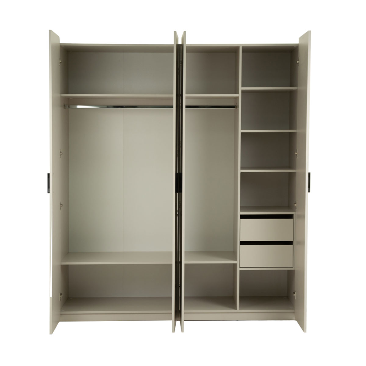 Шафа «4D2S SOFT» — це повноцінна система зберігання, яка дозволяє організувати всі речі максимально зручно та логічно. Вона поєднує в собі місткість, функціональність і стриманий сучасний дизайн.Завдяки великій ширині та продуманому внутрішньому наповненню шафа дозволяє розмістити як верхній одяг, так і повсякденні речі, білизну чи аксесуари. Висувні шухляди додають практичності — вони ідеально підходять для дрібніших речей, які завжди мають бути під рукою.