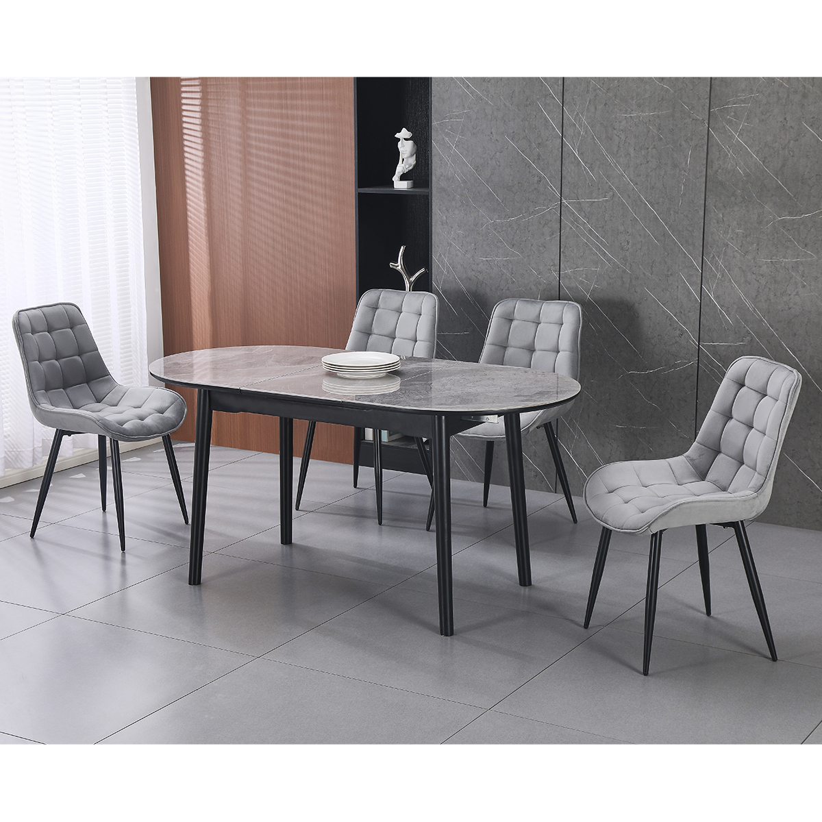 Стіл «Кайман» — елегантне та функціональне рішення для сучасної оселі. Стільниця з імітацією штучного каменю додає вишуканості та створює відчуття преміального дизайну. Вона вирізняється стійкістю до щоденного використання та легко впишеться як у класичний, так і в сучасний інтер’єр.Міцні ніжки зі 100% каучукового дерева, вкриті чорною фарбою, забезпечують надійну опору й довговічність виробу. Завдяки своїй конструкції стіл витримує навантаження до 60 кг, а вага виробу 45 кг гарантує його стабільність та стійкість.