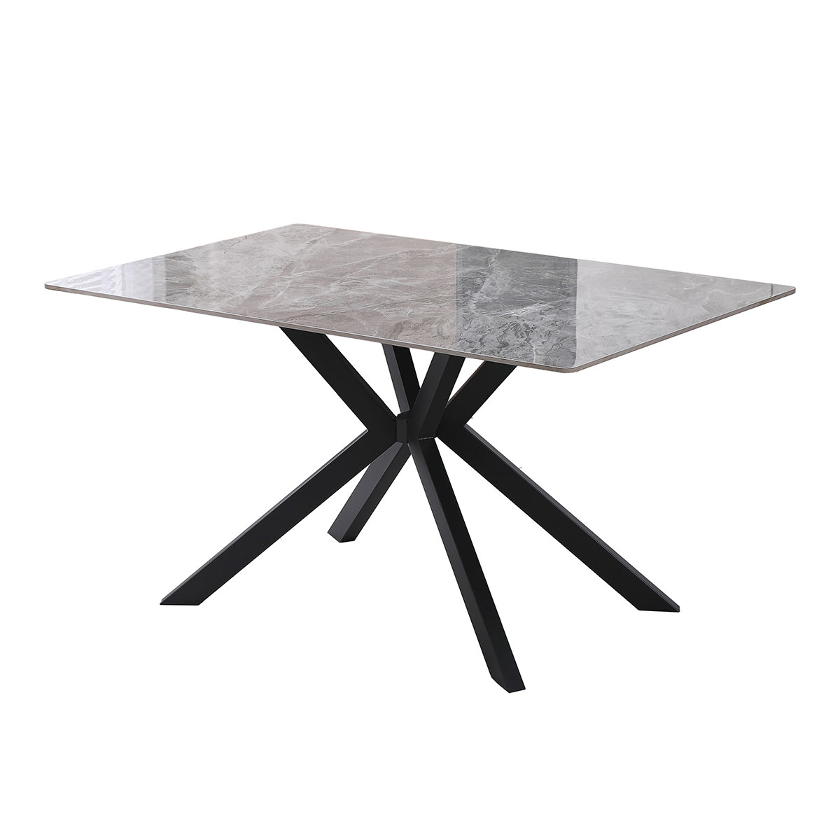 Обідній стіл «Торі» — це стильне рішення для сучасної кухні або їдальні, де важливі естетика, надійність і комфорт у щоденному користуванні. Лаконічна прямокутна форма у поєднанні з масивною дизайнерською основою створює ефектний акцент в інтер’єрі та підкреслює сучасний характер простору.Стільниця виконана з кераміки — матеріалу, що відзначається високою міцністю, стійкістю до подряпин і впливу температур. Поверхня має виразний кам’яний малюнок, який додає столу вишуканості та глибини. Металеві ніжки вкриті чорною порошковою фарбою, що забезпечує довговічність покриття та стійкість до механічних пошкоджень.